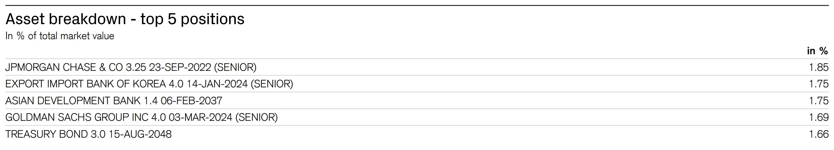 | ![]() Asset allocation vs. Benchmark ![]() Country/Currency allocation on map ![]() Asset allocation as barchart ![]() Top N positions ![]() Position list ![]() Two-dimensional Asset Allocation ![]() Strategy check ![]() Strategy check as table ![]() Development of asset allocation ![]() Development of asset allocation as chart And many more… |