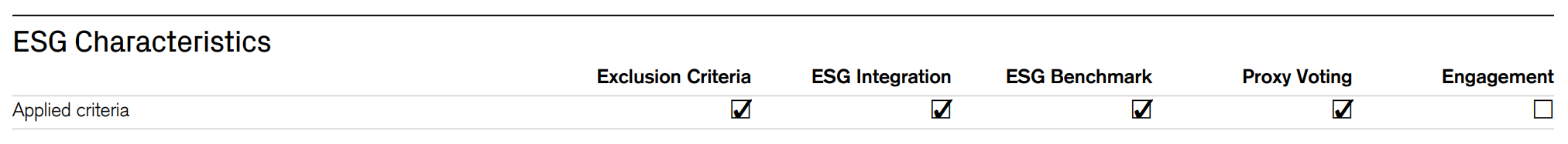 | ![]() ESG Risk ![]() ESG Worst positions ![]() Business activities ![]() CO2 Emissions ![]() SDG Alignment And many more… |