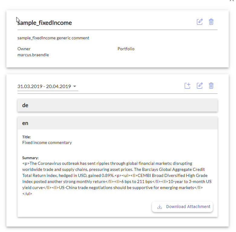 Attachment: Microsoft Word file that can be embedded together with title and summary into the final word/pdf report